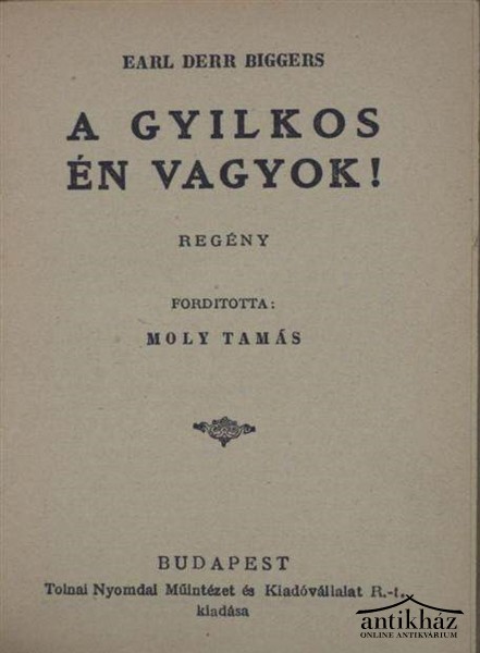 Szerző: Earl Derr BiggersKiadó: Tolnai