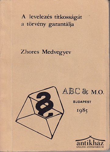 Zsoresz Alekszandrovics Medvegyev szovjet biológus, disszidens. Műve egy jelentős szamizdat dokumentum, amely a szovjet cenzúra és a magánlevelek ellenőrzésének gyakorlatát mutatja be. A magyarországi kiadás 1985-ben jelent meg az ABC & M.O. Független Kiadó gondozásában, szamizdat formájában, feltárva a szovjet államhatalom beavatkozását a személyes szabadságjogokba. Jó állapotban.