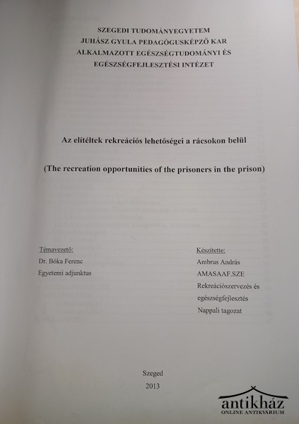 Szakdolgozat. Bekötetlen, jó állapotban.