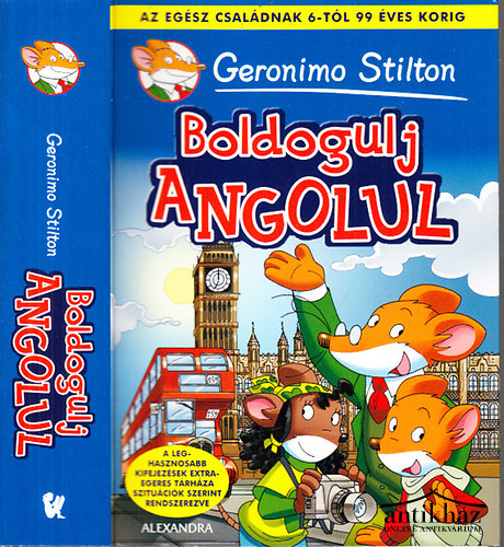 A kötet egy interaktív, illusztrációkkal teli angol társalgási kézikönyv a népszerű Geronimo Stilton karakterével, amely gyerekeknek és felnőtteknek egyaránt segít alapvető angol kifejezések elsajátításában, tematikus elrendezésben 3000 mondattal, 2500 szóval, hogy bárki könnyen megtanuljon angolul megszólalni. Jó állapotban.