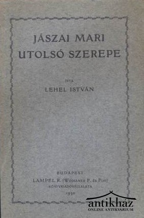 A magyar színháztörténeti irodalom szerény gyűjteményében kiemelkedő helyet foglalnak el a Jászai Mariról szóló munkák. Lázba hozta az írástudókat, akik között könyvtáros éppúgy akadt, mint színésznö, kritikus, drámaíró, irodalomtörténész, tanár, unatkozó úriasszony. De nemcsak a monográfiákban, a szerepeiről szóló kritikákban, a róla készített színészportrékban szerepel – alig akad olyan emlékezés, melyben ne találkoznánk a nevével. Rajta kívül nincs más színész – talán Latinovits Zoltán alakja vált hasonlóan mitikussá – aki olyan elevenen élne a szellemi életben. Jászai Mari művészetének rejtelmes titka: az a mélységes belső átélés, amellyel minden szerepét élő szimbólummá emeli. Lehel Istvánnak a nagy magyar színésznőről írt hézagpótló könyvében olyan életrajzi jegyzetekkel és hivatkozásokkal találkozunk, amik kevésbé ismertek a nagyközönség és a színésznőt kedvelő rajongók között. Emellett sorba szedi összes szerepeit a Nemzeti Színházban. Jó állapotban.