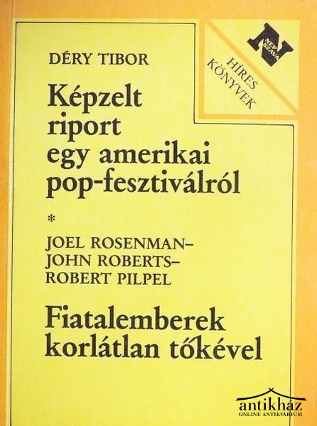 Az emberi közösségek bomlására és az emberi személyiség pusztulására utaló fenyegetés nyomán született Déry Tibor sokak által ismert kisregénye, a Képzelt riport egy amerikai pop-fesztiválról. A regény története egy popfesztivál körülményei között játszódik, de nem a popzenét ítéli meg vagy utasítja el, hanem korunk anarchikus mozgalmainak végső következményét mutatja be. Ezt a kisregényt most Joel Rosenman, John Roberts és Robert Pilpel amerikai szerzők Fiatalemberek korlátlan tőkével című könyvével jelentetjük meg újra. Ebben a könyvben a Déry Tibornak is ihletet adó legendás Woodstock fesztivál igaz története olvasható úgy, ahogy azt a két fiatalember elmondta, akik az egészet fizették. A két hajdani tőkeerős partner jóval egymillió dollár fölötti veszteséget könyvelhetett el a fesztivál után, s további tízmillióért perelték őket.