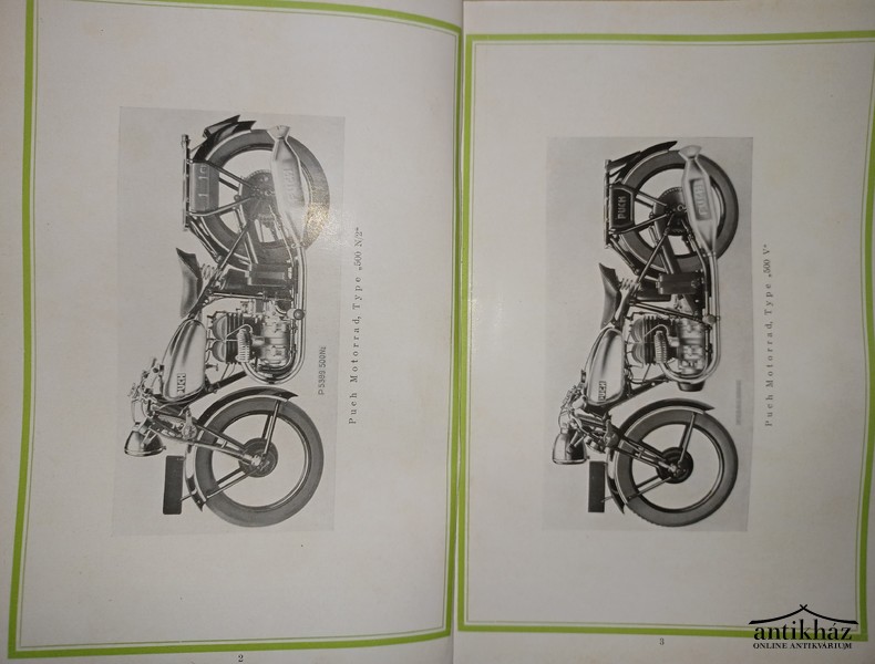 A Puch egy történelmi osztrák gyártóvállalat, amelyet 1899-ben alapított Johann Puch Grazban. A cég híres volt kerékpárok, motorkerékpárok, mopedek (pl. Puch Maxi) és gépjárművek (pl. Puch 500, Puch G) gyártásáról, melyek a Steyr-Daimler-Puch konszern részeként váltak ismertté. A kiadvány az 500 N/2 és az 500 V típusú motorkerékpárok alkatrészktalógusa fényképekkel, német nyelven. Jó állapotban.