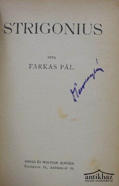 Szerző: Farkas PálKiadó: Singer és Wolfner
