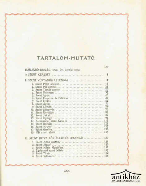 A Révay József szerkesztette kötetből megismerhetjük a keresztény szentek, vértanúk legendáit, életét, a kultúrtörténetnek és az egyházművészetnek e fontos részét.