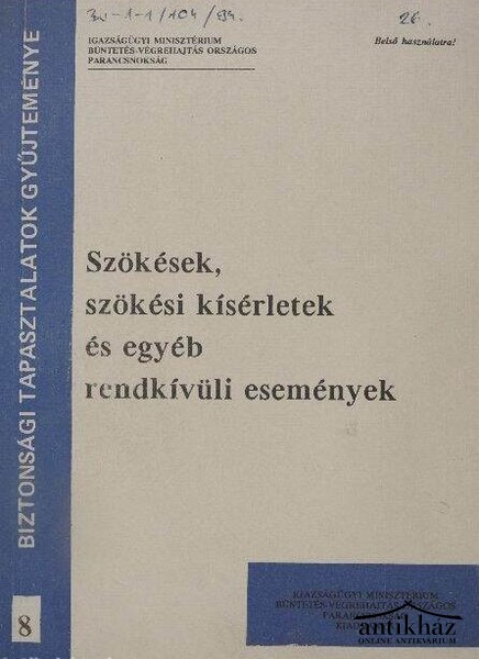 Szerző: Dr. Csordás Sándor (szerk.)Kiadó: Igazságügyi Minisztérium Büntetésvégrehajtás Országos Parancsnoksága